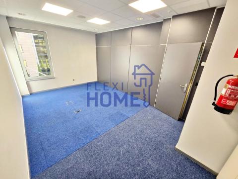 Zonas comunes: 58 m² con cocina office (ideal para comer/descansar) y sala de juntas equipada con pantalla de gran formato y pizarra, sala de ordenadores, servicios/aseos