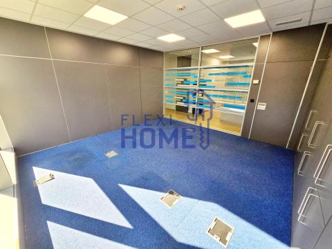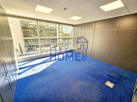 Zonas comunes: 58 m² con cocina office (ideal para comer/descansar) y sala de juntas equipada con pantalla de gran formato y pizarra, sala de ordenadores, servicios/aseos