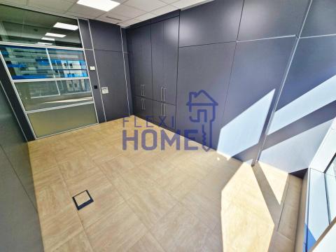 Zonas comunes: 58 m² con cocina office (ideal para comer/descansar) y sala de juntas equipada con pantalla de gran formato y pizarra, sala de ordenadores, servicios/aseos