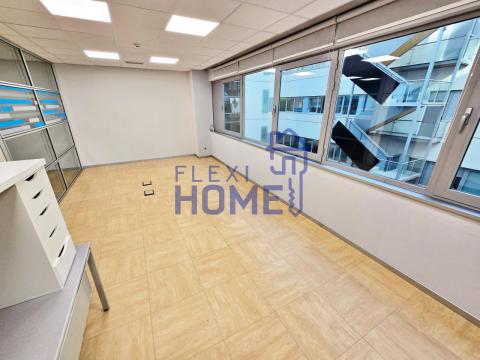 Zonas comunes: 58 m² con cocina office (ideal para comer/descansar) y sala de juntas equipada con pantalla de gran formato y pizarra, sala de ordenadores, servicios/aseos